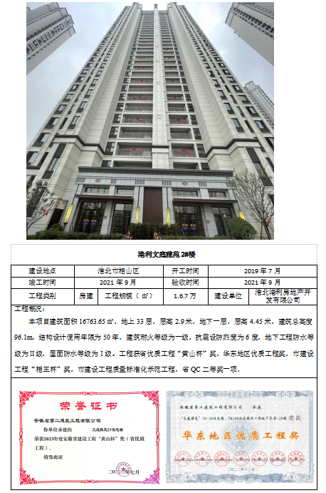 淮北文庭雅苑工程2#(黃山杯)