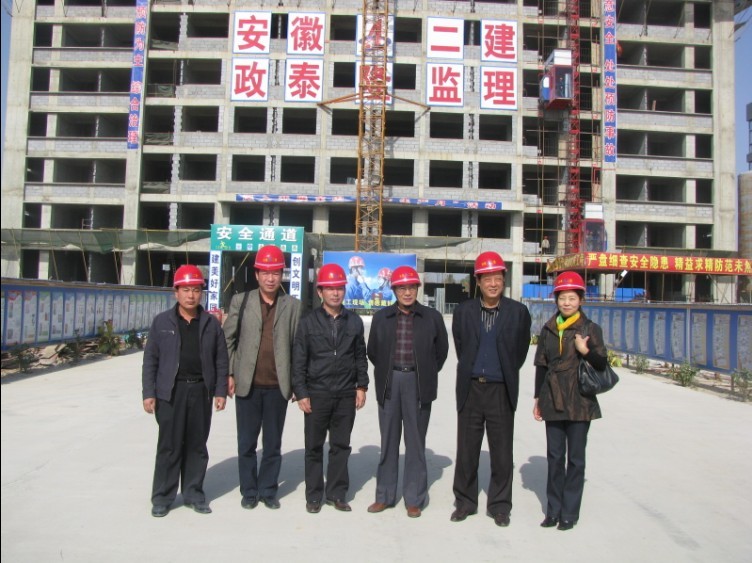 20101112,集團紀委書記、工會主席劉振武率集團工會一行,在二建公司工會主席李林的陪同下,到安徽二建承建的界首人民醫院東城分院工程檢查“爭創優秀項目部、爭當優秀項目經理”即“雙爭”競賽工作。劉振武書記對項目部在開展以“五比五賽”為內容的“雙爭”競賽中,著力抓好工程質量、安全、文明施工雙示范和項目成本、效益方面給予充分肯定,認為是安徽二建在合作項目上成功開展“雙爭”競賽的嘗試和亮點,希望繼續強化管理,健全各項管理機制,進一步拓展如何開展合作項目“雙爭”競賽工作新路,為推進集團公司科學發展做出新的貢獻。