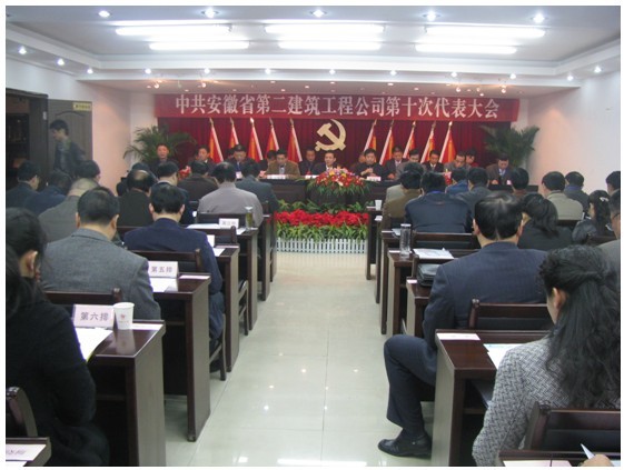 2010年11月25至26日,中共安徽省第二建筑工程公司第十次黨員代表大會(huì)隆重召開。來(lái)自生產(chǎn)一線、各部門、離退休支部等各個(gè)層面的72名黨員代表參加了大會(huì),安徽建工集團(tuán)有限公司黨委書記張海平、紀(jì)委書記、工會(huì)主席劉振武、黨委工作部主任吳曉武等出席大會(huì)開幕式。