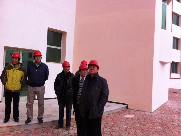 戴總先后實地查看了大學城1#建筑學院、9#學生公寓、10#學生公寓和18#學生公寓等四個項目,聽取了項目部工作匯報。戴總肯定了項目部前一階段所取得的成績,對項目部在人員配置不足,面臨重重困難的情況下完成的工作量表示了贊賞。戴總說,此行一是看望慰問項目部廣大干部職工;二是調整和充實項目部領導班子;三是落實明年4月16日竣工目標的工作安排。戴總強調,康斯坦丁大學城項目是安徽二建海外項目的關鍵工程,也是公司新的經濟增長點,公司上下對此項目非常重視。目前施工完成總量離阿國竣工要求日期日益接近,但也還存在不足,因此項目部全體職工要認清形勢,要有緊迫感和危機感,在離竣工目標只剩4個月的時間里,迅速掀起大干高潮,加快結構施工進度,狠抓工程收尾和零星附屬工程,質量要上臺階,實現工期、質量、安全、成本管理四個目標。在抓好施工的同時,還要注意加大人才培養力度,不斷優化海外項目部人力資源結構,完善人才儲備,為海外未來的發展奠定堅實的人才基礎;培養一批可靠的有實力的施工合作伙伴;進一步探索符合海外特點的項目施工管理經驗,向集團和公司交上一份滿意的答卷。