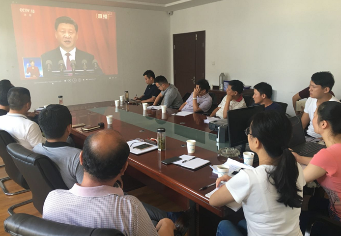 在觀看學習習總書記在慶祝中國共產黨成立95周年大會上的講話時,同志們聚精會神,不時提筆記錄,緊隨著總書記的講話內容邊學習邊思考。