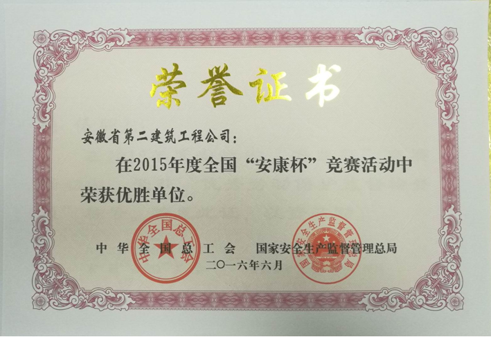 安徽二建喜獲2015年度全國“安康杯”競賽優勝單位榮譽稱號