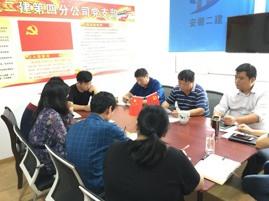 2019年5月27日上午,四分公司黨支部開展了“黨員活動日”活動,集中學(xué)習(xí)了建工控股黨委關(guān)于持續(xù)深入扎實(shí)學(xué)好用好黨章的文件,并組織黨員對照黨章查擺問題,機(jī)關(guān)和合肥項(xiàng)目部黨員參加學(xué)習(xí),黨支部書記董建民主持活動。