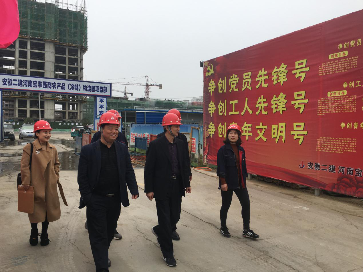 和煦的陽光溫暖愜意,細柔的春風馨香滿懷,4月10日,建工控股工會副主席吳曉伍、安徽二建公司副調研員李林、四分公司黨支部書記董建民等一行5人,來到安徽二建河南寶豐西商農產品(冷鏈)物流園項目現場驗收,并為項目“工人先鋒號”授牌。