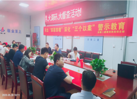 5月28日,公司財務(wù)總監(jiān)項新元一行深入四分公司合肥麗豐璞羽西苑項目部開展以“三個以案”警示教育大宣講、大調(diào)研、大督查活動。項新元一行首先聽取了項目部關(guān)于開展“三個以案”的工作匯報。隨后,調(diào)研組帶領(lǐng)大家學(xué)習(xí)了安徽建工控股黨委關(guān)于深化“三個以案”警示教育大宣講和關(guān)于“工程建設(shè)領(lǐng)域廉潔風(fēng)險防控清單”內(nèi)容,同時進(jìn)行了問卷調(diào)查,對項目關(guān)鍵崗位人員進(jìn)行了談話。最后,項新元重申了建工控股紀(jì)委書記宋志華5月25日在該項目給公司中層干部提出的幾點要求,并對項目部提出了三點建議。