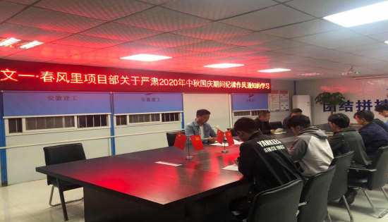 另外傳達(dá)了認(rèn)真學(xué)習(xí)安徽省紀(jì)委《關(guān)于貫徹落實習(xí)近平總書記重要批示精神 加強(qiáng)監(jiān)督執(zhí)紀(jì) 堅決制止餐飲浪費(fèi)行為的通知》和公司紀(jì)委《關(guān)于嚴(yán)肅2020年中秋國慶期間紀(jì)律作風(fēng)的通知》。