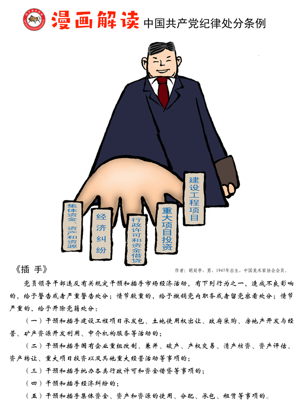 編者按:紀(jì)律是我們黨的生命線,加強(qiáng)紀(jì)律建設(shè)是全面從嚴(yán)治黨的治本之策。為深入貫徹落實(shí)十九屆中央紀(jì)委四次全會關(guān)于加強(qiáng)黨紀(jì)國法教育的部署要求,強(qiáng)化黨規(guī)黨紀(jì)的學(xué)習(xí)宣傳、貫徹執(zhí)行,使鐵的紀(jì)律真正轉(zhuǎn)化為黨員干部的日常習(xí)慣和自覺遵循,中央紀(jì)委國家監(jiān)委網(wǎng)站聯(lián)合河北省紀(jì)委監(jiān)委,以漫畫形式對《中國共產(chǎn)黨紀(jì)律處分條例》進(jìn)行解讀,陸續(xù)連載刊發(fā),敬請關(guān)注。