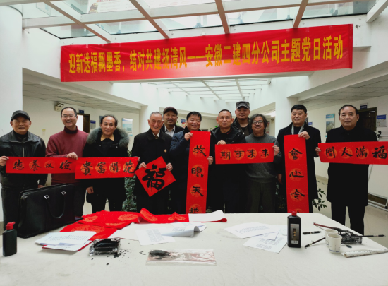 春節(jié)臨近,為營(yíng)造喜慶、祥和、熱烈的新春氛圍,豐富分公司文化內(nèi)涵,弘揚(yáng)中華優(yōu)秀傳統(tǒng)文化。1月29日下午,安徽二建四分公司黨支部組織開(kāi)展“迎新送福飄墨香,結(jié)對(duì)共建揚(yáng)清風(fēng)”寫(xiě)春聯(lián)送祝福主題黨日活動(dòng)。活動(dòng)邀請(qǐng)了安徽省新四軍歷史研究會(huì)淮海委員會(huì)會(huì)長(zhǎng)張振山、副會(huì)長(zhǎng)楊承愉,安徽省書(shū)法家協(xié)會(huì)會(huì)員牛中民、朱良謀等一行現(xiàn)場(chǎng)揮毫寫(xiě)春聯(lián),分公司機(jī)關(guān)近30余人參加了活動(dòng)。