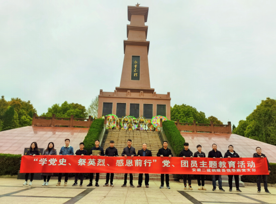 4月2日,三分公司銅陵吾悅?cè)A府項(xiàng)目黨支部開展“學(xué)黨史、祭英烈、感恩前行”主題活動(dòng)。