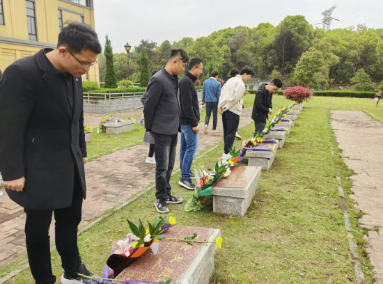 此時的銅陵革命烈士陵園,細雨蒙蒙,黨團員們整齊列隊、莊嚴肅立,緬懷革命先烈,追憶崢嶸歲月,汲取“不忘初心、牢記使命”的精神源泉。在每座烈士墓前,大家用心感受先烈們用生命踐行初心使命,用行動捍衛理想,奉獻人生價值的光榮事跡。