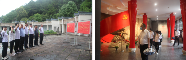 6月20日上午,分公司黨支部組織黨員干部、入黨積極分子共計(jì)20余人,從銅陵吾悅?cè)A府項(xiàng)目部出發(fā),前往涇縣新四軍軍部舊址和皖南事變烈士陵園,開(kāi)展黨史學(xué)習(xí)教育現(xiàn)場(chǎng)教學(xué),深刻緬懷革命先烈的豐功偉績(jī)。一行人先后瞻仰了軍長(zhǎng)葉挺、副軍長(zhǎng)項(xiàng)英等老一輩革命家的辦公室和起居室,觀看了革命文物、史料圖片和偉人題字,實(shí)地感受革命隊(duì)伍在艱苦的物質(zhì)環(huán)境和復(fù)雜的政治環(huán)境下,矢志不渝、抗戰(zhàn)到底的鐵軍精神,洗滌了黨員們的心靈,激勵(lì)了黨員們的斗志。在皖南事變烈士陵園紀(jì)念廣場(chǎng),黨員們舉行了莊重的宣誓儀式,重溫了入黨誓詞。
