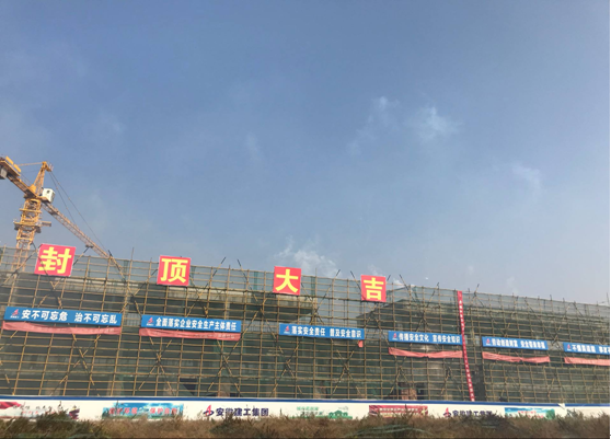 亳州新發地農產品批發市場項目自2017年3月5日開工以來,得到公司各級領導的大力支持,為使工程在一個保安全,重質量的和諧環境中快速順利推進,公司各級領導多次到現場檢查,指導工作,統籌全局,事無巨細,全力保證項目正常運行。項目集中技術力量,克服高溫雨季的影響,攻堅克難,在監理單位以及建設單位的全力配合下,順利的完成全部主體結構封頂任務。