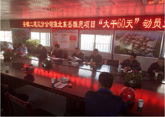 近日,三分公司積極落實(shí)《關(guān)于組織開展“大干六十天”勞動競賽的通知》二建【2017】130號文,成立了以馬福才副經(jīng)理為組長,其他班子成員為副組長,各科室負(fù)責(zé)人、項(xiàng)目經(jīng)理為成員的勞動競賽領(lǐng)導(dǎo)小組。邀請公司副總經(jīng)理葉和永參加分公司生產(chǎn)例會,會上宣讀了公司下達(dá)的通知及各項(xiàng)目任務(wù)指標(biāo),強(qiáng)調(diào)此次勞動競賽的重要意義。會議對各在建項(xiàng)目的生產(chǎn)任務(wù)進(jìn)行梳理、細(xì)化,明確了難點(diǎn)和重點(diǎn),要求各項(xiàng)目特別是項(xiàng)目經(jīng)理要提高認(rèn)識、充分調(diào)動項(xiàng)目全員的積極性,倒排計(jì)劃、精心組織、正視困難、迎難而上,迅速掀起項(xiàng)目施工生產(chǎn)大干的熱潮。要求各職能科室加大宣傳力度,多深入項(xiàng)目,對各項(xiàng)目全面、順利完成公司下達(dá)的任務(wù)指標(biāo)而給與幫助、指導(dǎo)、監(jiān)督、協(xié)調(diào)、服務(wù)。會上強(qiáng)調(diào),分公司機(jī)關(guān)、各項(xiàng)目一定要發(fā)揮共產(chǎn)黨員的先鋒模范作用,青年突擊隊(duì)的引領(lǐng)作用,帶領(lǐng)全員埋頭苦干,以更加飽滿的熱情、更加有效的搶工措施、更加扎實(shí)的工作作風(fēng)來迎接本次勞動競賽。