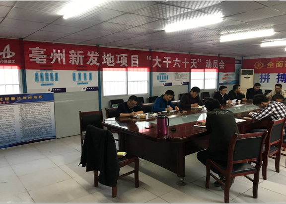 會后,各項(xiàng)目項(xiàng)目經(jīng)理立即組織項(xiàng)目全員召開“大干60天”勞動競賽動員會,在會上對任務(wù)進(jìn)行了布置分解、與所屬勞務(wù)隊(duì)伍簽訂勞動競賽責(zé)任狀。以馬福才為首的分公司領(lǐng)導(dǎo)班子分頭帶領(lǐng)科室負(fù)責(zé)人到各在建項(xiàng)目進(jìn)行檢查,查看各項(xiàng)目勞動競賽活動的開展情況,對項(xiàng)目存在的困難進(jìn)行了梳理、指導(dǎo)、協(xié)調(diào)。