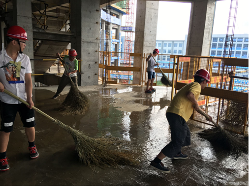 團員青年利用傍晚高溫天氣減弱時段,使用大掃帚、灑水管、拖把、防塵布等物品,在工地安全入口、樓層內(nèi)、施工環(huán)形路上進行除塵行動,每一名青年團員滿懷熱情,積極響應(yīng),你灑水我拖地,你接水管我蓋布,干勁十足,展現(xiàn)了生物島一期項目青年團員的良好形象。