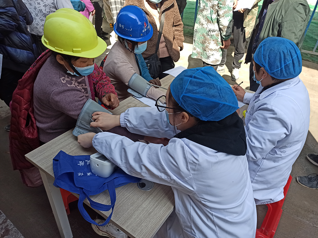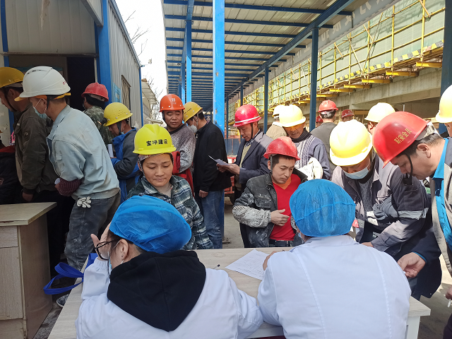 體檢過程中,項目部管理人員協助醫護人員維護現場秩序、登記信息、協助體檢,保障了現場體檢工作的有序開展。現場醫護人員為工友們測量身高、體重、血壓、心率等多項身體指標,詢問他們的身體健康狀況、生活作息規律,為他們講解了工作中注意事項和疾病預防措施。