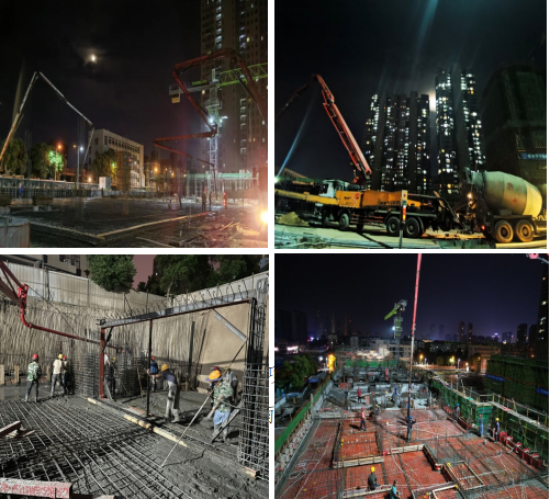 為完成各項節點計劃,項目管理人員帶領各勞務班組“搶晴天、戰雨天,牛毛細雨當好天”,搶抓工期,比拼進度;進入夏季以來,持續高溫,市氣象部門接連多次發布橙色預警,戶外溫度常達40度以上,為確保工人作業安全,項目部及時調整施工作業時間,在確保施工安全的前提下,采取“干兩頭、歇中間”的施工措施,組織班組加班加點分批交叉作業,呈現出“月亮底下當白天,不給黑夜留時間”的大干火熱場面。同時項目部每日在高溫時段為現場施工人員送去防暑藥品和降溫飲品,防止意外發生。隨著最近氣溫逐漸轉涼,整個施工現場挖機聲、機械聲、泵送聲相互交織;夜色下施工現場燈光如晝,人頭躦動;渣土車、混凝土罐車川流不息往返穿梭,現場各個工作面的施工人員都卯足勁往前沖。